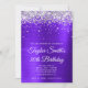 Um convite glamouroso monograma de aniversário de 30 anos 5x7 para ela. Brilhante prata brilhante com faíscas contra uma imagem gráfica de folha metálica violeta violeta de indigo elétrica. Todos os elementos brilhantes e brilhantes neste moderno design feminino são gráficos digitais.