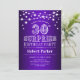 Convite de festas de aniversário de 30 anos surpresa. Design branco roxo com luzes de cordas de fada. Elegante design perfeito para uma comemoração de um dia de surpresa.