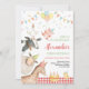 Uma fazenda e um convite de aniversário de gingham vermelho para o seu filho ou a festa de aniversário do quintal da menina. Todo texto é editável - adequado para qualquer idade!