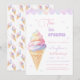 aniversário de 3 anos convite com sorvete doce e delicioso desenhado em cor pastel suave no estilo de aquarela.