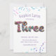 Bolo de biscoito decorado super fofo para aniversário de 3 anos, completo com glacé e aspersores.