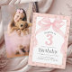Um convite de aniversário rosa giro para uma menina fazendo três anos, este design apresenta um arco colchete rosa pastel com faixa de rodagem e uma borda rosa com bolinhas brilhantes. A simplicidade desta design misturada com o arco rosa feminino faz dela uma escolha encantadora de meninas. A parte de trás do convite tem um modelo de foto para personalizar com uma foto da aniversariante. Personalize o modelo de texto com os detalhes do evento. Este convite está disponível em formatos digitais de download impressos e instantâneos para envio por email.