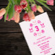 Páscoa do terceiro aniversário com coelhos cor-de-rosa e ovos de Páscoa