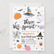 Convite para aniversário de 3 anos de Halloween com Três Espíritos