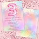 Aniversário de 3 anos do Arco-Íris Rosa Incita convite de festas Brilhante Rosa Brilhante, primeiro aniversario para uma menina de 3 anos com moderno roteiro escrevendo e balões de folha divertida.