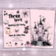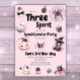 Ela é um Espírito Três. Convite de aniversário de Halloween Apresenta gráficos bonitos de abóboras cor-de-rosa e pêssego, aranha de gatos, fantasma fofo.
