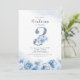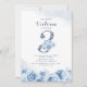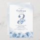 Flórida de cor azul-d-água moderna com brilho azul esfarrapado grande 3 nos convites para aniversário de 3 anos, elegante e na moda, excelente.
