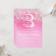 Aniversário de 3 anos cor-de-rosa Incita convite de aniversário Brilhante Rosa para uma menina de 3 anos com escrevendo moderno de escrita e balões de folha divertida.