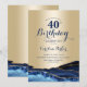 convite de festas aniversário de 40 anos azul e dourado agate. Elegante design moderno com cor azul-real de água agate marble geode fundo, fonte falsa de ouro brilhante e script de tipografia. Trendy convida o cartão perfeito para uma comemoração de dia das mulheres na moda. Impressos convites Zazzle ou modelo de impressão digital instantânea para download.