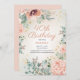 Bonito cor-de-água rosa, cor-de-água, floral e folhas verdes, convite de festas com brilho dourado. Texto é uma fonte elegante de script. Entre em contato comigo para obter assistência com a personalização ou para solicitar a correspondência ou a coordenação de produtos Zazzle para o seu partido.
