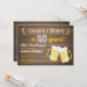 Convite à aniversário de 40 anos de "Cheers and Beers" Rustic Surprise. Aniversário Adulto. Aniversário de cerveja para homens. Fundo Preto e Branco.