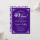 Convite para aniversário de 40 anos. Elegante design púrpura e branca com cor damasco. Apresenta a fonte do script. Saúde para 40 anos! Pode ser personalizado em qualquer idade! Envie-me uma mensagem se precisar de mais personalização.