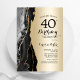 Convite de festas de aniversário de 40 anos preto e dourado. Elegante design moderno com fundo geode de pedra de pedra, dourado falso e letra de script de tipografia. Trendy convida o cartão perfeito para uma comemoração de dia das mulheres na moda. Impressos convites Zazzle ou modelo de impressão digital instantânea para download.