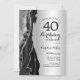 Convite de festas aniversário de 40 anos preto e prateado. Elegante design moderno com fundo geode de pedra de pedra marmortal, letra falsa prata brilhante e script de tipografia. Trendy convida o cartão perfeito para uma comemoração de dia das mulheres na moda. Impressos convites Zazzle ou modelo de impressão digital instantânea para download.