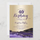 Convite de festas de aniversário de 40 anos de agato roxo e dourado. Elegante design moderno com aquarela agate marble geode background, faux glitter gold e typografia script font. Trendy convida o cartão perfeito para uma comemoração de dia das mulheres na moda. Impressos convites Zazzle ou modelo de impressão digital instantânea para download.