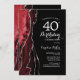 Convite de festas aniversário de 40 anos preto vermelho e branco de agate. Elegante design moderno com aquarela agate marble geode background, faux glitter prata e tipografia. Trendy convida o cartão perfeito para uma comemoração de dia das mulheres na moda. Impressos convites Zazzle ou modelo de impressão digital instantânea para download.