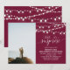 Celebre seu dia especial com este convite personalizado de aniversário de casamento com foto. Este design apresenta uma bela tipografia "shhh...é uma surpresa" e luzes de corda em um fundo vermelho burgundy. Você pode personalizar o texto para qualquer ano. Substitua a foto de amostra pela sua própria foto. Suprimentos para festa correspondentes disponíveis na minha loja BaraBomDesign.