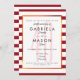 Com um clássico fundo listrado de rubi e branco, este convite elegante de aniversário de casamento de rubi de quadragésimo aniversário apresenta uma borda de folha de rubi falsa elegante emoldurando os detalhes da festa de aniversário de 40 anos definidos em tipografia chic sobre um 40 estiloso. Concebido por Thisisnotme©