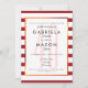 Com um clássico fundo listrado de rubi e branco, este convite de aniversário de casamento de rubi quadragésimo apresenta uma elegante moldura de folha de rubi falso que emoldura os detalhes da festa de aniversário de 40 anos definidos em tipografia chic sobre um 40 elegante. Concebido por Thisisnotme©