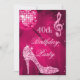 Convites de aniversário rosa-quente. Convites personalizados para comemoração de aniversário de 40 anos, personalizados e elegantes, de mulheres, com glitz e glamour. Convites de aniversário bonitos, cor-de-rosa e branco, de cor-de-rosa-quente, de quarenta / quarenta anos / 40 anos, com uma bola de espelhamento divertida na discoteca, imagens impressas glamourosas, brilho, sequências, diamantes bordando joias e saltando saltos altos, calçados de moda, e notas musicais brilhantes/notas musicais com brilho em um brilho quente e faísca-rosa fundo de kles. Chic, clássico, fofo, giro, convites modernos para festas em tendências, cores / cores da moda. Estes groovy, rico, na moda, sofisticados, bonito, convites entre raparigas são decorados/impressos em ambos os lados. Convites perfeitos para um evento de dança jante. Pérolas e tapetes de renda por ©Hazel Kinvig-Paul www.design-a-dream.co.uk NOTA: todos os convites no Zazzle têm imagens impressas planas. Se precisar de assistência para personalizar seu produto, entre em contato comigo através da minha loja e eu ficarei feliz em ajudar.
