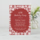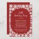 Flocos de neve brancos brilhantes em uma rica decoração vermelha de fundo neste Convite de aniversário de inverno. Este convite é fácil de personalizar para qualquer idade. Se forem necessários itens adicionais nesta coleção, entre em contato conosco em prettyfancyinvites@gmail.com com sua solicitação.