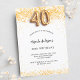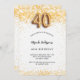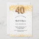 Para uma aniversário de 40 anos elegante. Um fundo branco chic. Decorado com confete de ouro. Personalize e adicione um nome e detalhes da parte. O nome é escrito com um script de estilo manuscrito. Número 40 com letra de estilo de balão.
