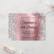 Crie o seu próprio convite para comemoração de aniversário de 40 anos no formato horizontal 5x7 do seu rico monograma. Gráficos cintilantes prateados decorativos bordam as bordas em uma rosa claro metálica estilo falso, folha de papel digital. Personalize as cores ou estilos da fonte do convite e do monograma. Você também pode excluir qualquer modelo de texto que não desejar. Os faíscas de luxo, as folhas reluzentes e as folhas de metal escovas serão criadas com elementos artísticos que impressão gostam de uma foto. Fabulosos aniversários convidam para o seu melhor amigo.
