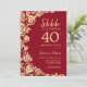 Convite de festas de aniversário de 40 anos de surpresa floral de ouro vermelho. Design elegante com rosas, folha de ouro falsa e letra de script de tipografia. A Trendy convida o cartão perfeito para uma festa de na moda. Pode ser personalizado para qualquer idade. Impressos convites Zazzle ou modelo de impressão digital instantânea para download.