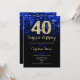 Convite de festas de aniversário de 40 anos surpresa. Elegante design azul real com ouro brilhante. Apresenta na moda diamante, luzes e fontes de script. Homens ou mulheres convidam no dia. Perfeito para uma festa de aniversário adulta na moda. Personalize com seus próprios detalhes. Envie-me uma mensagem se precisar de mais personalização. Impressos convites Zazzle ou modelo de impressão digital instantânea para download.