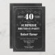 Convite de aniversário de 40 anos de surpresa Quadro retrorreflector elegante, design preto e branco. Saúde para 40 anos!