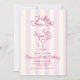Levante seu copo, é Margarita O'clock! Celebre seu aniversário de 40 anos no estilo retróchico com esta divertida e engraçada design de convite para aniversário de 40 anos de coquetel margarita desenhada à mão. Montado em um fundo listrado clássico, cor-de-rosa suave e creme, este design moderno oferece um pouco de brilho com um charme de eterno. Com o texto e o nome da manchete definidos em uma fonte giratória lúdica retrorinspirada e lúcida, adicionando talento e personalidade, os detalhes do evento são apresentados em um tipo de serifa sans limpo e complementar em um tom mais profundo de rosa para um contraste elegante. Perfeito para uma celebração na moda, este convite é ideal para aqueles que amam um pouco de nostalgia, um pouco de moda, e muita personalidade. Uma escolha nova e fabulosa para os seus quatro grandes!