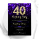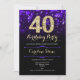 convite de festas aniversário de 40 anos. Design púrpura elegante com ouro brilhante. Apresenta na moda diamante, luzes e fontes de script. Homens ou mulheres convidam no dia. Perfeito para uma festa de aniversário adulta na moda. Personalize com seus próprios detalhes. Envie-me uma mensagem se precisar de mais personalização. Impressos convites Zazzle ou modelo de impressão digital instantânea para download.