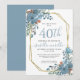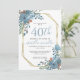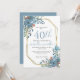 Um convite floral de cor aquosa, poeirento, azul, poeirento, com moldura dourada. Azul poeirento na parte de trás do convite. Um design de aquarela bonito e leve.