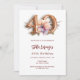 Um convite moderno, na moda e glamouroso para um aniversário de 40 anos. Fundo branco, decorado com um pêssego e uma flor púrpura de cor d'água. O nome é escrito com um moderno estilo escrito à mão. Personalize e adicione os detalhes da sua festa. O número 40 é escrito com uma fonte de estilo de balão, script.
