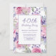 convite de festas aniversário de 40 anos decorado com belos florais cor-de-rosa e roxo em branco. Esses convites podem ser personalizados para qualquer um de qualquer idade. Entre em contato comigo para obter assistência com suas personalizações ou para solicitar outros produtos Zazzle correspondentes ou coordenadores para sua celebração.