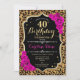 Convite para aniversário de 40 anos. Design preto rosa elegante com ouro brilhante. Apresenta impressões de animais de chita leopardo, fontes de script e rosas de fuschia rosa-quente. Perfeito para uma bolsa mensageifesta de aniversario elegante. Pode ser personalizado em qualquer ano! Envie-me uma mensagem se precisar de mais personalização.