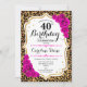 Convites aniversário de 40 anos - Impressão Leopardo Dourad