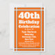 Enviar convites para uma celebração de aniversário de 40 anos com este Convite de aniversário de 40 anos Laranja. Ele pode ser personalizado com suas informações pessoais.