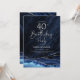 convite de festas aniversário de 40 anos azul marinho e agate prateado. Elegante design moderno com cor azul-real de água agate marble geode fundo, faux glitter prata e script de tipografia. Trendy convida o cartão perfeito para uma comemoração de dia das mulheres na moda. Impressos convites Zazzle ou modelo de impressão digital instantânea para download.