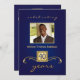 Convites de festas de aniversário de 40 anos personalizados com foto personalizada — convites de aniversário azuis masculinos com sotaque de ouro decorativo e monograma. Adicione sua própria foto e personalize o nome, a data e os detalhes para qualquer ano ou ocasião feliz. Perfeito para fotos contemporâneas ou antigas. Correspondência de correio e cartões de agradecimento disponíveis. **NOTA: Dimensionado para cartões de convite padrão 5 x 7. Clique em "PERSONALIZAR TI" para alterar o tamanho e a fonte. Outras cores e estilos disponíveis na galeria.