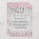 Um convite moderno, na moda e glamouroso para um aniversário de 40 anos. Um fundo de aspecto fino prateado, decorado com pó brilhante de prata rosa e falso. Personalize e adicione o seu nome e detalhes da festa. O número 40 é escrito com uma fonte de estilo de balão, script.