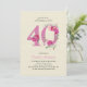 Convites aniversário de 40 anos Rosa Peony Floral Número 40
