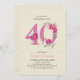 convite de festas aniversário de 40 anos com número floral 40. Este elegante design de safra apresenta um número cor-de-rosa 40 decorado com flores de pénia rosa, rosas e eucalipto em um sutil fundo listrado. Bela feminina com charme de jardim rural - perfeita para uma senhora especial celebrando uma aniversário de 40 anos.