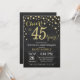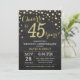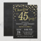 Convite de Aniversário de 45 anos de Casamento Quadro Negro e Dourado. Quarenta e cinco Anos de Casamento. Fundo de Diamante Brilhante Preto e Dourado. Confetes Dourados. Aniversário de Adulto. Festa de Aniversário de Homem ou Mulher. Para personalização adicional, clique no botão "Personalize" e use nossa ferramenta de design para modificar este modelo.