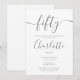 Com o nome no estilo de assinatura, este convite de aniversário de 50 anos cinza e branco elegante pode ser personalizado com suas informações em letras cinza chic. Criado por Thisisnotme©