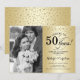 Convite de Aniversário de 50 anos de Casamento com Foto. Design elegante em dourado com fonte script e confetes. Pode ser personalizado para mostrar qualquer ano de casamento. Saúde por 50 anos!
