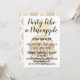 Convite de Aniversário de 50 anos de casamento no Destino Tropical ao estilo Abacaxi. Este é um convite perfeito para o aniversário de cinquenta anos de casamento para uma festa tropical. O abacaxi é em folha de ouro falso e fundo branco com texto manuscrito sobreposto. O texto pode ser personalizado com suas informações.