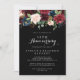 Este convite de aniversário de 50 anos de casamento botânico preto rústico é perfeito para uma celebração de casamento clássico. O design apresenta flores pintadas à mão radiantes e graciosas em burgundy, vermelho, azul-marinho, azul e blush em um fundo preto, inspirando beleza natural.