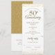 Um convite e cartão de RSVP tudo-em-um para você personalizar com os detalhes da sua celebração de aniversário de 50 anos de casamento dourado em tipografia dourada chique. O verso apresenta confetes de coração de amor dourados. O convite inclui um cartão de RSVP que pode ser destacado e detalhes de informações do convidado. Projetado por Thisisnotme©