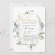 Convite de aniversário de 50 anos de casamento com eucalipto de floresta selvagem com moldura geométrica dourada, projetado para ser personalizado rápida e facilmente de acordo com os detalhes do seu evento.